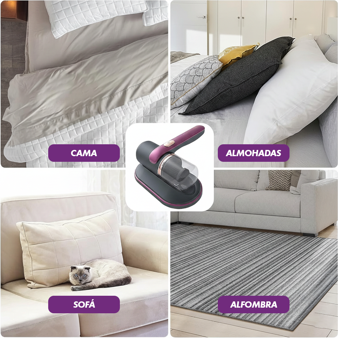 Sí. La combinación de succión potente, luz UV y filtro HEPA permite extraer y reducir ácaros, polvo y alérgenos incrustados en textiles.