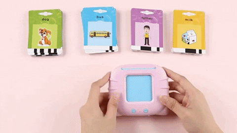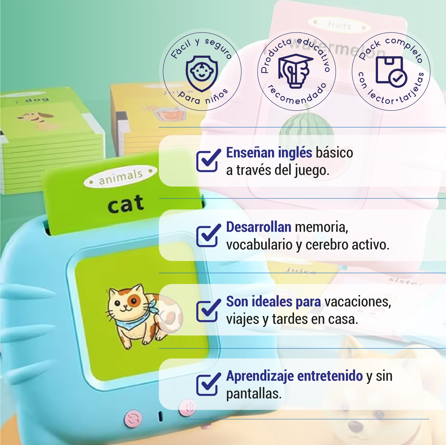 Este juego combina un lector electrónico + tarjetas de aprendizaje que: