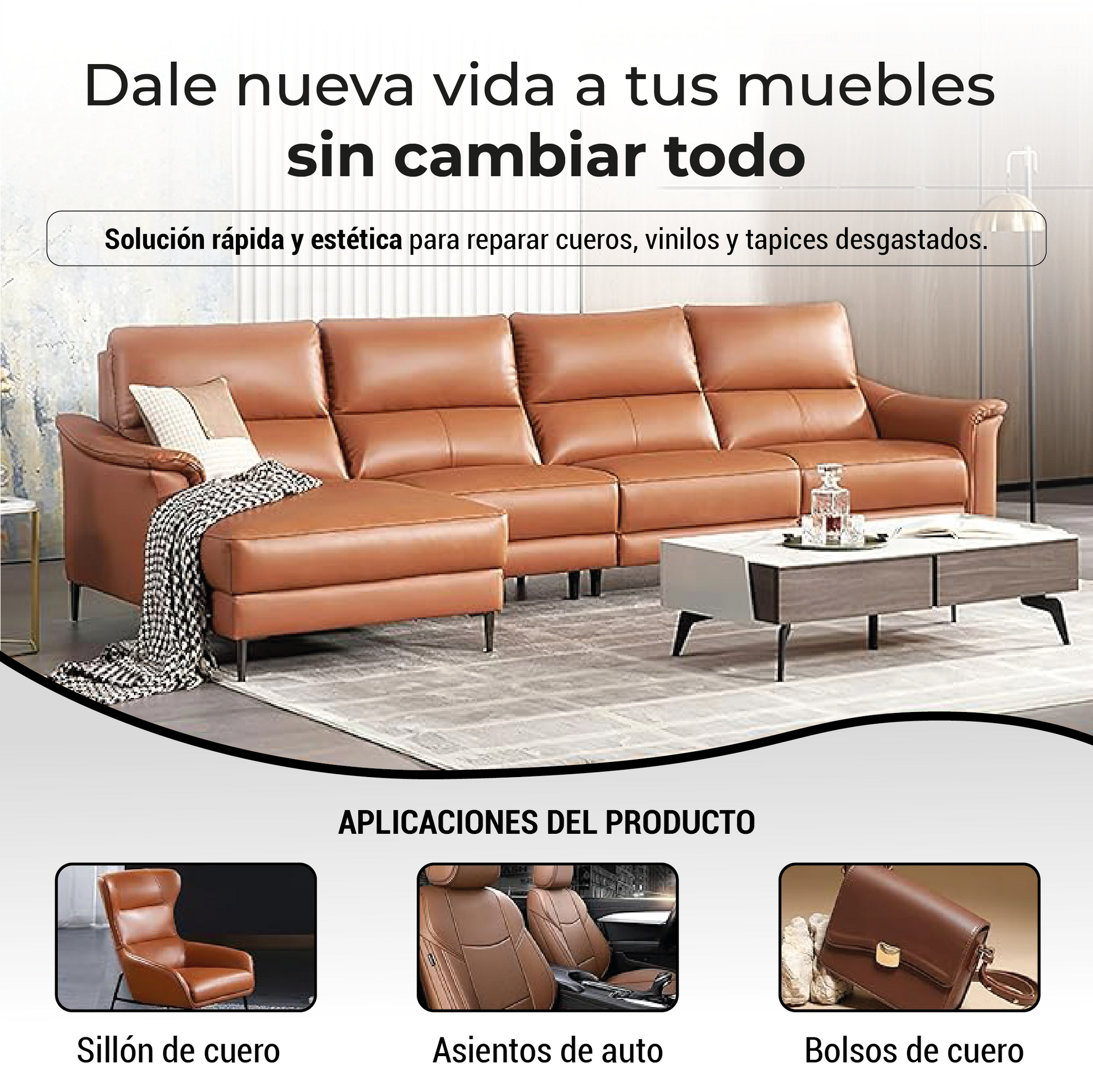 Logra una reparación económica y duradera con acabado tipo cuero.